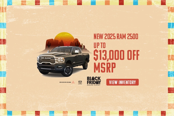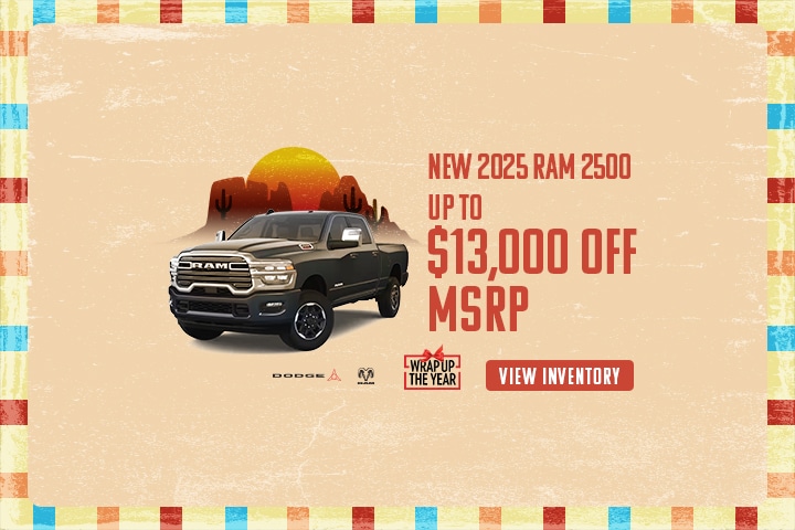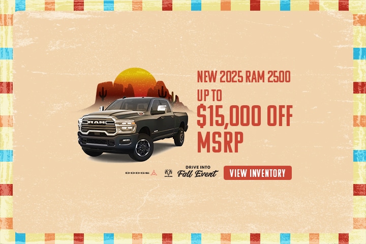 The RAM 2500 is elegant and chic in every way. Loaded with endless technological features that even the most sophisticated of drivers will find impressive, the RAM 2500 is one of the best selling models in it's segment. With a wide range of configurations and options, you'll find it easy for it to perfectly fit all your needs. For more information on how you can trade-in your vehicle to purchase a new 2500, call one of our product specialists today.