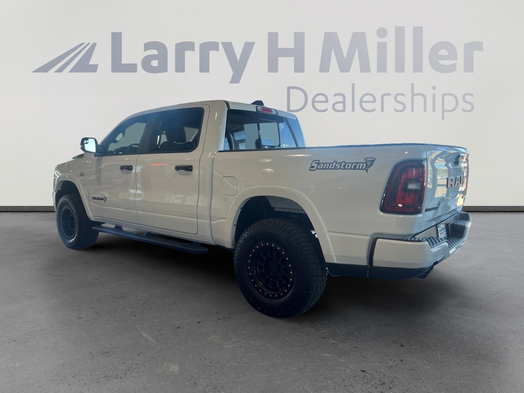 SANDSTORM EDITION WITH CUSTOM LIFT, WHEELS AND 34 INCH TIRES!!!! Bright White Clearcoat 2026 Ram 1500 Big Horn/Lone Star 4WD 8-Speed Automatic HEMI 5.7L V8 Multi Displacement VVT eTorque 115V Auxiliary Power Outlet, 115V Auxiliary Rear Power Outlet, 12 Touchscreen Display, 2nd Row In Floor Storage Bins, 3 Rear Seat Head Restraints, 33 Gallon Fuel Tank, 4 Way Front Headrests, 4-Wheel Disc Brakes, 400W Inverter, 48V Belt Starter Generator, 4G LTE Wi-Fi Hot Spot, 6 Speakers, 9 Amplified Speakers w/Subwoofer, ABS brakes, Accent Color Door Handles, Accent Color Premium Power Mirrors, Accent Color Tailgate Handle, Air Conditioning, Air Conditioning ATC w/Dual Zone Control, Alloy wheels, AM/FM radio, Anti-Spin Differential Rear Axle, Apple CarPlay, Apple CarPlay/Android Auto, Auto High-beam Headlights, Auto Power-Folding Mirrors, Auto-Dimming Exterior Driver Mirror, Auto-Dimming Rear-View Mirror, Big Horn Level 2 Equipment Group, Black Exterior Mirrors, Black Exterior Truck Badging, Black Headlamp Bezels, Black Interior Accents, Black Painted Exterior Mirrors Caps, Black Premium Power Mirrors, Black Tail Lamp Bezels, Body Color Fender Flares, Body Color Front Bumper, Body Color Rear Bumper w/Step Pads, Brake assist, Bucket Seats, Bumpers: chrome, Center Console Parts Module, Cloth Bucket Seats, Cluster 7.0 TFT Color Display, Compass, Configurable Drive Mode, Connected Travel & Traffic Services, Connectivity - US/Canada, Convex Wide-Angle Exterior Mirror Insert, Delay-off headlights, Deluxe Cloth Bucket Seats, Disassociated Touchscreen Display, Driver door bin, Dual Exhaust w/Black Tips, Dual front impact airbags, Dual front side impact airbags, Electronic Stability Control, Exterior Mirrors Courtesy Lamps, Exterior Mirrors w/Heating Element, Exterior Mirrors w/Supplemental Signals, Front anti-roll bar, Front Bucket Seats, Front Center Armrest w/Storage, Front fog lights, Front License Plate Bracket, Front reading lights, Front Seat Back Map Pockets, Front wheel independent suspension, Full Length Floor Console, Fully automatic headlights, Global Telematics Box Module (TBM), Glove Box Lamp, Google Android Auto, GPS Antenna Input, GPS Navigation, Grille Black Surround Black Mesh, HD Radio, Heated door mirrors, Heated Front Seats, Heated Steering Wheel, Illuminated entry, Integrated Center Stack Radio, Integrated Voice Command w/Bluetooth, Leather Wrapped Steering Wheel, LED Dome Lamp w/On/Off Switch, LED Footwell Lighting, Low tire pressure warning, Manual Adjust 4-Way Driver Seat, Manual Adjust 4-Way Front Passenger Seat, Manual Folding Exterior Mirrors, Manufacturer's Statement of Origin, Media Hub w/2 Charge Only USBs, MOPAR Front & Rear Rubber Floor Mats, MyFlexCare Service Plan, Night Edition, Occupant sensing airbag, Outside temperature display, Overhead airbag, Overhead console, Overhead LED Lamps, Panic alarm, ParkView Rear Back-Up Camera, Passenger door bin, Passenger vanity mirror, Power 2-Way Driver Lumbar Adjust, Power Adjust 8-Way Driver Seat, Power Adjustable Pedals, Power door mirrors, Power steering, Power windows, Premium Overhead Console, Quick Order Package 27Z Big Horn, Radio data system, Radio: Uconnect 5 Nav w/12.0 Display, Radio: Uconnect 5 W w/8.4 Display, RAM Grille Badge - Black, RAM Grille Badge - Chrome, Rear 60/40 Folding Seat, Rear anti-roll bar, Rear Center Armrest, Rear Power Sliding Window, Rear step bumper, Rear Window Defroster, Remote keyless entry, Remote Tailgate Release, Secondary Active Grille Shutters, Security Alarm, SiriusXM Radio Service, SiriusXM w/360L, Speed control, Steering Wheel Mounted Audio Controls, Sun Visors w/Illuminated Vanity Mirrors, Supplier Part Tracking (J-1), Tachometer, Telescoping steering wheel, Tilt steering wheel, Traction control, Trailer Brake Control, Trip computer, Universal Garage Door Opener, USB Host Flip, Variably intermittent wi Price includes: $1000 - 2026 West BC Bonus Cash . Exp. 11/03/2025 $3500 - 2026 National Retail Consumer Cash . Exp. 11/03/2025