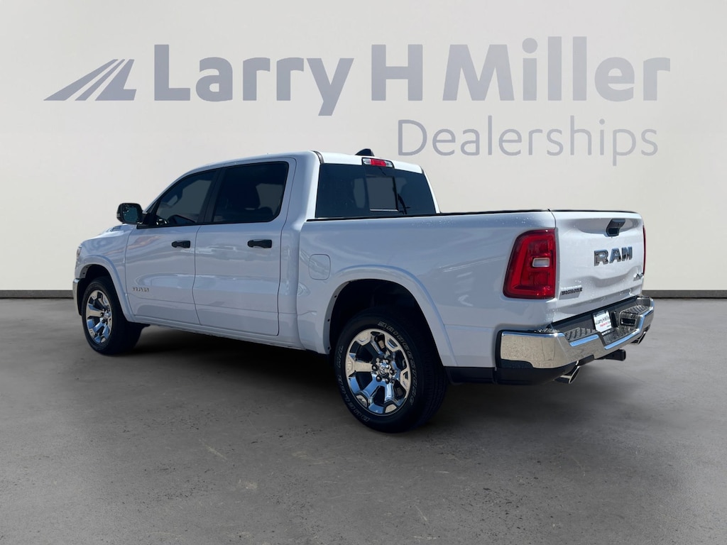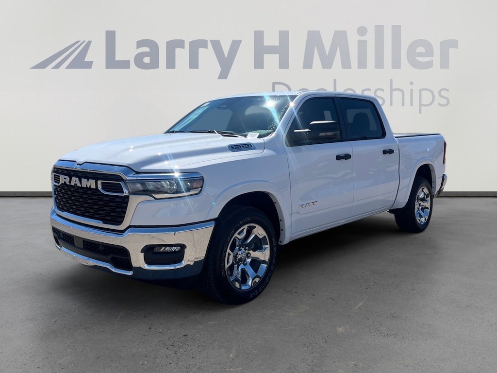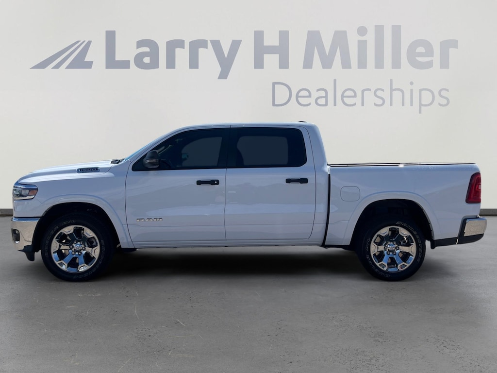 Bright White Clearcoat 2026 Ram 1500 Big Horn/Lone Star 4WD 8-Speed Automatic 3.0L I6 115V Auxiliary Power Outlet, 115V Auxiliary Rear Power Outlet, 12 Touchscreen Display, 2nd Row In Floor Storage Bins, 3 Rear Seat Head Restraints, 33 Gallon Fuel Tank, 4 Way Front Headrests, 4-Wheel Disc Brakes, 400W Inverter, 48V Belt Starter Generator, 4G LTE Wi-Fi Hot Spot, 6 Speakers, 9 Amplified Speakers w/Subwoofer, ABS brakes, Air Conditioning, Air Conditioning ATC w/Dual Zone Control, Alloy wheels, AM/FM radio, Apple CarPlay, Apple CarPlay/Android Auto, Auto High-beam Headlights, Auto Power-Folding Mirrors, Auto-Dimming Exterior Driver Mirror, Auto-Dimming Rear-View Mirror, Big Horn Level 2 Equipment Group, Black Exterior Mirrors, Black Premium Power Mirrors, Body Color Fender Flares, Brake assist, Bucket Seats, Bumpers: chrome, Center Console Parts Module, Cloth Bucket Seats, Cluster 7.0 TFT Color Display, Compass, Configurable Drive Mode, Connected Travel & Traffic Services, Connectivity - US/Canada, Convex Wide-Angle Exterior Mirror Insert, Delay-off headlights, Deluxe Cloth Bucket Seats, Disassociated Touchscreen Display, Driver door bin, Dual front impact airbags, Dual front side impact airbags, Electronic Stability Control, Exterior Mirrors Courtesy Lamps, Exterior Mirrors w/Heating Element, Exterior Mirrors w/Supplemental Signals, Front anti-roll bar, Front Bucket Seats, Front Center Armrest w/Storage, Front fog lights, Front License Plate Bracket, Front reading lights, Front Seat Back Map Pockets, Front wheel independent suspension, Full Length Floor Console, Fully automatic headlights, Global Telematics Box Module (TBM), Glove Box Lamp, Google Android Auto, GPS Antenna Input, GPS Navigation, HD Radio, Heated door mirrors, Heated Front Seats, Heated Steering Wheel, Illuminated entry, Integrated Center Stack Radio, Integrated Voice Command w/Bluetooth, Leather Wrapped Steering Wheel, LED Dome Lamp w/On/Off Switch, LED Footwell Lighting, Low tire pressure warning, Manual Adjust 4-Way Driver Seat, Manual Adjust 4-Way Front Passenger Seat, Manual Folding Exterior Mirrors, Manufacturer's Statement of Origin, Media Hub w/2 Charge Only USBs, MOPAR Front & Rear Rubber Floor Mats, Occupant sensing airbag, Outside temperature display, Overhead airbag, Overhead console, Overhead LED Lamps, Panic alarm, ParkView Rear Back-Up Camera, Passenger door bin, Passenger vanity mirror, Power 2-Way Driver Lumbar Adjust, Power Adjust 8-Way Driver Seat, Power Adjustable Pedals, Power door mirrors, Power steering, Power windows, Premium Overhead Console, Quick Order Package 21Z Big Horn, Radio data system, Radio: Uconnect 5 Nav w/12.0 Display, Radio: Uconnect 5 W w/8.4 Display, RAM Grille Badge - Chrome, Rear 60/40 Folding Seat, Rear anti-roll bar, Rear Center Armrest, Rear Power Sliding Window, Rear step bumper, Rear Wheelhouse Liners, Rear Window Defroster, Remote keyless entry, Remote Tailgate Release, Secondary Active Grille Shutters, Security Alarm, SiriusXM Radio Service, SiriusXM w/360L, Speed control, Steering Wheel Mounted Audio Controls, Sun Visors w/Illuminated Vanity Mirrors, Supplier Part Tracking (J-1), Tachometer, Telescoping steering wheel, Tilt steering wheel, Traction control, Trailer Brake Control, Trip computer, Universal Garage Door Opener, USB Host Flip, Variably intermittent wipers, Voltmeter, Wheels: 18 x 8 Cast-Aluminum Painted, Wheels: 20 x 9 Aluminum Chrome Clad (WRK), Wireless Charging Pad. Price includes: $3500 - 2026 National Retail Consumer Cash . Exp. 11/03/2025