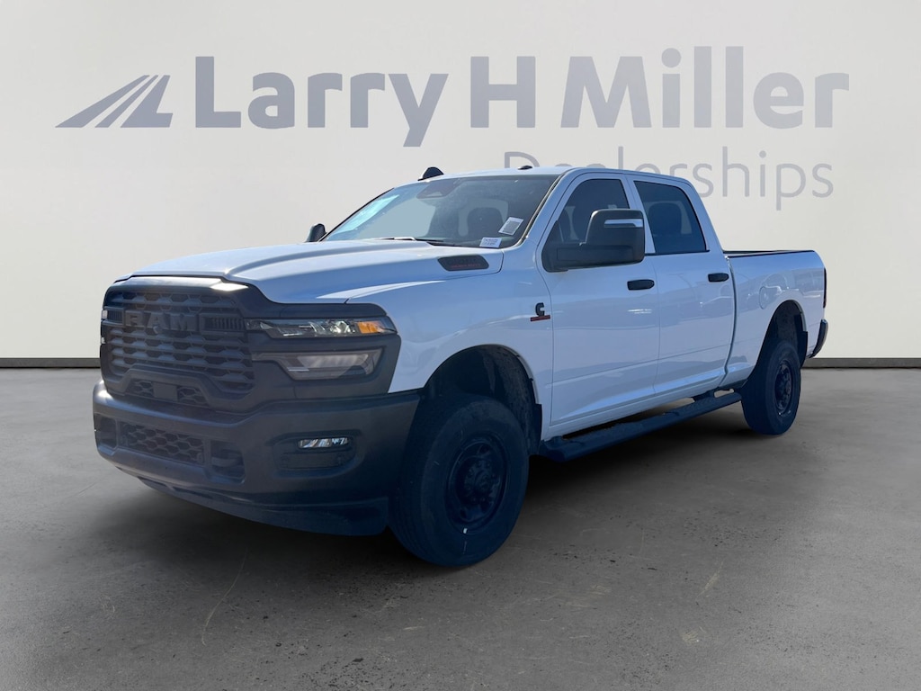 Bright White Clearcoat 2026 Ram 2500 Tradesman 4WD 8-Speed Automatic 6.7L I6 115V Auxiliary Front Power Outlet, 12 Touchscreen Display, 2 Way Rear Headrest Seat, 4 Way Front Headrests, 4-Wheel Disc Brakes, 40/20/40 Split Bench Seat, 400W Inverter, 4G LTE Wi-Fi Hot Spot, 6 Speakers, ABS brakes, Air Conditioning, Air Conditioning ATC w/Dual Zone Control, Alexa Built-In, AM/FM radio: SiriusXM, Anti-Spin Differential Rear Axle, Apple CarPlay, Apple CarPlay/Android Auto, Auto-Dimming Rear-View Mirror, Black Exterior Mirrors, Black Wheel Center Hub, Brake assist, Commercial Features Package, Compass, Connected Travel & Traffic Services, Connectivity - US/Canada, Dash Pass Thru Wire Circuits, Delay-off headlights, Disassociated Touchscreen Display, Driver door bin, Dual front impact airbags, Dual front side impact airbags, Electronic Stability Control, Emergency Vehicle Alert System (EVAS), Exterior 115V AC Outlet, For Details, Visit DriveUconnect.com, For More Info, Call 800-643-2112, Front anti-roll bar, Front Armrest w/Cupholders, Front Center Armrest w/Storage, Front fog lights, Front License Plate Bracket, Front reading lights, Fully automatic headlights, Global Telematics Box Module (TBM), Google Android Auto, GPS Antenna Input, GPS Navigation, HD Radio, Heavy Duty Vinyl 40/20/40 Split Bench Seat, I/P Mounted Auxiliary Switches, Illuminated entry, Integrated Voice Command w/Bluetooth, Low tire pressure warning, Manual Adjust 4-Way Driver Seat, Manual Adjust 4-Way Front Passenger Seat, Manual Folding Exterior Mirrors, Manual Telescoping Mirrors, Manufacturer's Statement of Origin, Mopar Black Tubular Side Steps, Occupant sensing airbag, Off-Road Info Pages, Outside temperature display, Overhead airbag, Overhead console, Panic alarm, ParkView Rear Back-Up Camera, Passenger door bin, Passenger vanity mirror, Power steering, Power windows, Quick Order Package 24A Tradesman, Radio data system, Radio: Uconnect 5 Nav w/12.0 Display, Radio: Uconnect 5 w/8.4 Display, Rear anti-roll bar, Rear Folding Seat, Rear Power Sliding Window, Rear step bumper, Rear Wheelhouse Liners, Rear window defroster, Remote keyless entry, Remote USB Port - Charge Only, Selectable Tire Fill Alert, SiriusXM Radio Service, SiriusXM w/360L, Speed control, Storage Tray, Tachometer, Tilt steering wheel, Tinted Acoustic Windshield Glass, Traction control, Tradesman Level 1 Equipment Group, Trailer Tow Pages, Variably intermittent wipers, Voltmeter, Wheels: 17 x 7.5 Black Steel Styled. Price includes: $1000 - 2026 National Bonus Cash . Exp. 11/03/2025