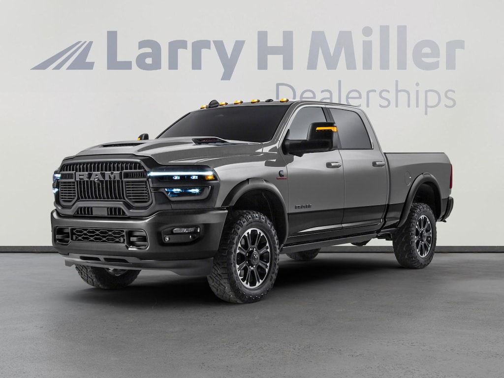 Ceramic Gray Clearcoat 2026 Ram 2500 Rebel 4WD 8-Speed Automatic 6.4L V8 115V Auxiliary Rear Power Outlet, 2 Way Rear Headrest Seat, 4 Way Front Headrests, 4-Wheel Disc Brakes, 4G LTE Wi-Fi Hot Spot, 6 Speakers, 9 Alpine Speakers w/Subwoofer, ABS brakes, Adjustable pedals, Air Conditioning, Alexa Built-In, Alloy wheels, AM/FM radio: SiriusXM with 360L, Apple CarPlay, Apple CarPlay/Android Auto, Auto Adjust In Reverse Exterior Mirrors, Auto Dim Exterior Mirror, Auto High Beam Headlamp Control, Auto Power-Folding Mirrors, Auto-Dimming Exterior Passenger Mirror, Auto-dimming Rear-View mirror, Automatic temperature control, Bed Convenience Group, Black Exterior Mirrors, Black Wheel Center Hub, Block heater, Body Color Door Handles, Brake assist, Bucket Seats, Cloth Heated Power Bench Seat, Compass, Connected Travel & Traffic Services, Connectivity - US/Canada, Delay-off headlights, Disassociated Touchscreen Display, Driver door bin, Dual front impact airbags, Dual front side impact airbags, Dual Wireless Charging Pad, Electronic Stability Control, Emergency Vehicle Alert System (EVAS), Exterior Mirrors Courtesy Lamps, Exterior Mirrors w/Heating Element, Exterior Mirrors w/Memory, Exterior Mirrors w/Supplemental Signals, Folding Flat Load Floor Storage, For Details, Visit DriveUconnect.com, For More Info, Call 800-643-2112, Forward & Reverse Utility Lights, Front anti-roll bar, Front Center Armrest w/Storage, Front Disconnecting Stabilizer Bar, Front Door Locks 2-Door Passive Entry, Front dual zone A/C, Front Electric Winch, Front fog lights, Front License Plate Bracket, Front reading lights, Front Seat Back Map Pockets, Full Length Upgraded Floor Console, Fully automatic headlights, Global Telematics Box Module (TBM), Google Android Auto, GPS Antenna Input, GPS Navigation, HD Radio, Heated door mirrors, Heated Front Seats, Heated front seats, Heated Second Row Seats, Heated Steering Wheel, Heated steering wheel, High Back Seats, Illuminated entry, Instrument Cluster Theme 5 - Power Wagon, Integrated Voice Command w/Bluetooth, Leather steering wheel, Leather Trimmed Bucket Seats, LED Bed Lighting, LED Dome Lamp w/On/Off Switch, LED Interior Lighting, Low tire pressure warning, Manufacturer's Statement of Origin, Media Hub w/2 Charge Only USBs, Mirror Running Lights, MOPAR Front & Rear Rubber Floor Mats, MOPAR Spray In Bedliner, MyFlexCare Service Plan, Navigation System, Occupant sensing airbag, Off-Road Info Pages, Outside temperature display, Overhead airbag, Overhead console, Overhead LED Lamps, Panic alarm, ParkView Rear Back-Up Camera, Passenger door bin, Passenger vanity mirror, Power 2-Way Driver Lumbar Adjust, Power 2-Way Passenger Lumbar Adjust, Power Adjust 8-Way Driver Seat, Power Adjust 8-Way Front Passenger Seat, Power Adjust Mirrors, Power Adjustable Pedals w/Memory, Power door mirrors, Power driver seat, Power Heated Fold Telescopic Mirrors w/Memory, Power steering, Power Telescoping Mirrors, Power Wagon Instrument Panel Spec Plate, Power Wagon Level 1 Equipment Group, Power windows, Power-Adjustable Convex Aux Mirrors, Premium Overhead Console, Quick Order Package 2UP Power Wagon, Radio data system, Radio: Uconnect 5 Nav w/12.0 Display, Radio/Driver Seat/Mirrors/Pedals Memory, Rain Sensitive Windshield Wipers, Raised Ride Height, RAM Articulink Suspension, Rear 60/40 Folding Seat, Rear anti-roll bar, Rear seat center armrest, Rear step bumper, Rear window defroster, Remote keyless entry, Security system, Selectable Tire Fill Alert, SiriusXM Radio Service, SiriusXM w/360L, Speed control, Split folding rear seat, Sport Performance Hood, Steering wheel mounted audio controls, Sun Visors w/Illuminated Vanity Mirrors, Tachometer, Tilt steering wheel, Traction control, Trailer Tow Pages, Trip computer, Tru-Lok Front & Rear Axles, Turn signal indicator mirrors, Universal Garage Door Opener, Upfitter Electronic Module (VSIM), Variably intermittent wipers Price includes: $1000 - 2026 National Bonus Cash . Exp. 12/01/2025