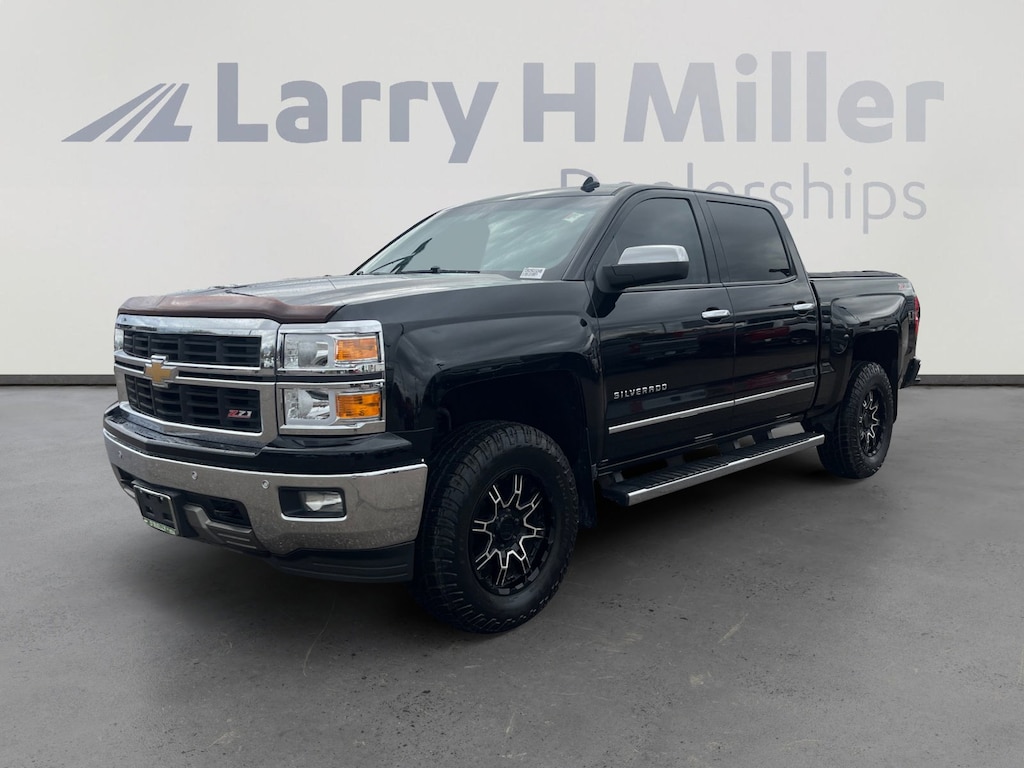 This 2014 Black Chevrolet Silverado 1500 LTZ 4WD is well equipped and includes these features and benefits: LTZ Plus Package (Leather Wrapped Heated Steering Wheel and Power Adjustable Pedals), Trailering Equipment, 6-Speed Automatic Electronic with Overdrive, 4WD, Black Leather, 110-Volt AC Power Outlet, 150 Amp Alternator, 4-Wheel Disc Brakes, 4.2 Diagonal Color Display Driver Info Center, 40/20/40 Front Split Bench Seat, 6 Speaker Audio System, 6 Speakers, ABS brakes, Air Conditioning, Alloy wheels, AM/FM radio: SiriusXM, Auto-dimming door mirrors, Auto-Dimming Inside Rear-View Mirror, Auto-dimming Rear-View mirror, Automatic temperature control, Auxiliary External Transmission Oil Cooler, Bluetooth® For Phone, Bodyside moldings, Bose Speaker System, Brake assist, Bumpers: chrome, CD player, Chrome Bodyside Moldings, Chrome Cap Power-Adjustable Heated Outside Mirrors, Chrome Door Handles, Chrome Mirror Caps, Color-Keyed Carpeting w/Rubberized Vinyl Floor Mats, Compass, Deep-Tinted Glass, Delay-off headlights, Driver & Front Passenger Illuminated Vanity Mirrors, Driver door bin, Driver vanity mirror, Dual front impact airbags, Dual front side impact airbags, Dual-Zone Automatic Climate Control, Electric Rear-Window Defogger, Electronic Stability Control, Emergency communication system: OnStar Directions & Connections, Engine Block Heater, Exterior Parking Camera Rear, EZ Lift & Lower Tailgate, Floor Mounted Console, Front anti-roll bar, Front Center Armrest w/Storage, Front Chrome Bumper, Front dual zone A/C, Front fog lights, Front Full Feature Power Reclining Bucket Seats, Front Halogen Fog Lamps, Front License Plate Kit, Front reading lights, Front wheel independent suspension, Fully automatic headlights, Garage door transmitter, Heated door mirrors, Heated Driver & Front Passenger Seats, Heated front seats, Heavy-Duty Rear Locking Differential, Illuminated entry, Integrated Trailer Brake Controller, Leather Appointed Seat Trim, Leather Wrapped Steering Wheel w/Cruise Controls, LED Cargo Box Lighting, Low tire pressure warning, Manual Tilt Wheel Steering Column, Manual Tilt/Telescoping Steering Column, Memory seat, Occupant sensing airbag, OnStar 6 Months Directions & Connections Plan, Outside temperature display, Overhead airbag, Overhead console, Panic alarm, Passenger door bin, Passenger vanity mirror, Power door mirrors, Power driver seat, Power passenger seat, Power Sliding Rear Window, Power steering, Power windows, Power Windows w/Driver Express Up, Premium audio system: Chevrolet MyLink, Radio data system, Radio: AM/FM 8 Diagonal Color Touch Screen, Rear 60/40 Folding Bench Seat (Folds Up), Rear Chrome Bumper, Rear reading lights, Rear seat center armrest, Rear step bumper, Rear Vision Camera w/Dynamic Guide Lines, Rear Wheelhouse Liners, Rear window defroster, Remote Keyless Entry, Remote keyless entry, Remote Vehicle Starter System, Security system, Single Slot CD/MP3 Player, SiriusXM Satellite & HD Radio, Speed control, Speed-sensing steering, Split folding rear seat, Steering Wheel Audio Controls, Steering wheel mounted audio controls, Tachometer, Theft Deterrent System (Unauthorized Entry), Tilt steering wheel, Traction control, Trip computer, Turn signal indicator mirrors, Ultrasonic Front & Rear Park Assist, Universal Home Remote, Variably intermittent wipers, and Voltmeter. 6-Speed Automatic Electronic with Overdrive, 4WD, Black Leather, 110-Volt AC Power Outlet, 150 Amp Alternator, 4-Wheel Disc Brakes, 4.2 Diagonal Color Display Driver Info Center, 40/20/40 Front Split Bench Seat, 6 Speaker Audio System, 6 Speakers, ABS brakes, Air Conditioning, Alloy wheels, AM/FM radio: SiriusXM, Auto-dimming door mirrors, Auto-Dimming Inside Rear-View Mirror, Auto-dimming Rear-View mirror, Automatic temperature control, Auxiliary External Transmission Oil Cooler, Bluetooth® For Phone, Bodyside moldings, Bose Speaker System, Brake assist, Bumpers: chrome, CD player, Chrome Bodyside Moldings, Chrome Cap Power-Adjust