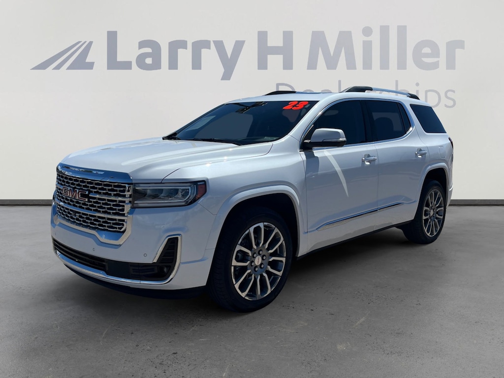 This 2023 White Frost Tricoat GMC Acadia Denali FWD is well equipped and includes these features and benefits: Denali Technology Package (Adaptive Cruise Control, Enhanced Automatic Emergency Braking, HD Surround Vision, Rear Camera Mirror, and Rear Camera Mirror Washer), Denali Ultimate Package (Dual SkyScape 2-Panel Power Sunroof), Preferred Equipment Group 5SA, Trailering Package (Heavy-Duty Cooling System, Hitch Guidance w/Hitch View, and Trailering Assist Guidelines), FWD, Jet Black Leather, 170 Amp Alternator, 20 Ultra Bright Machined Aluminum Wheels, 3.49 Final Drive Axle Ratio, 3rd row seats: split-bench, 4-Wheel Disc Brakes, 6-Passenger (2-2-2 Seating Configuration), 8 Speakers, 8-Way Power Driver Seat Adjuster, 8-Way Power Passenger Seat Adjuster, ABS brakes, Air Conditioning, Alloy wheels, AM/FM radio: SiriusXM with 360L, Apple CarPlay/Android Auto, Auto High-beam Headlights, Auto-dimming door mirrors, Auto-dimming Rear-View mirror, Automatic temperature control, Bose Premium 8-Speaker Audio System Feature, Brake assist, Bumpers: body-color, Compass, Delay-off headlights, Driver door bin, Driver vanity mirror, Dual front impact airbags, Dual front side impact airbags, Electronic Stability Control, Emergency communication system: OnStar and GMC connected services capable, Four wheel independent suspension, Front anti-roll bar, Front Bucket Seats, Front Center Armrest, Front dual zone A/C, Front fog lights, Front reading lights, Fully automatic headlights, Garage door transmitter, Heads-Up Display, Heated & Ventilated Driver & Front Passenger Seats, Heated door mirrors, Heated Driver & Front Passenger Seats, Heated front seats, Heated Rear Outboard Seating Positions, Heated rear seats, Heated steering wheel, Illuminated entry, Knee airbag, Low tire pressure warning, Memory seat, Navigation System, Occupant sensing airbag, Outside temperature display, Overhead airbag, Overhead console, Panic alarm, Passenger door bin, Passenger vanity mirror, Perforated Leather-Appointed Seat Trim, Power door mirrors, Power Driver Lumbar Control Seat Adjuster, Power driver seat, Power Liftgate, Power Passenger Lumbar Control Seat Adjuster, Power passenger seat, Power steering, Power windows, Radio data system, Radio: AM/FM 8 Diagonal Multi-Touch Navigation, Rear air conditioning, Rear anti-roll bar, Rear reading lights, Rear window defroster, Rear window wiper, Remote keyless entry, Security system, SiriusXM w/360L, Speed control, Speed-sensing steering, Spoiler, Steering wheel memory, Steering wheel mounted audio controls, Tachometer, Telescoping steering wheel, Tilt steering wheel, Traction control, Trip computer, Turn signal indicator mirrors, Variably intermittent wipers, Ventilated front seats, Voltmeter, and Wireless Apple CarPlay/Wireless Android Auto. FWD, Jet Black Leather, 170 Amp Alternator, 20 Ultra Bright Machined Aluminum Wheels, 3.49 Final Drive Axle Ratio, 3rd row seats: split-bench, 4-Wheel Disc Brakes, 6-Passenger (2-2-2 Seating Configuration), 8 Speakers, 8-Way Power Driver Seat Adjuster, 8-Way Power Passenger Seat Adjuster, ABS brakes, Adaptive Cruise Control, Air Conditioning, Alloy wheels, AM/FM radio: SiriusXM with 360L, Apple CarPlay/Android Auto, Auto High-beam Headlights, Auto-dimming door mirrors, Auto-dimming Rear-View mirror, Automatic temperature control, Bose Premium 8-Speaker Audio System Feature, Brake assist, Bumpers: body-color, Compass, Delay-off headlights, Denali Technology Package, Denali Ultimate Package, Driver door bin, Driver vanity mirror, Dual front impact airbags, Dual front side impact airbags, Dual SkyScape 2-Panel Power Sunroof, Electronic Stability Control, Emergency communication system: OnStar and GMC connected services capable, Enhanced Automatic Emergency Braking, Four wheel independent suspension, Front anti-roll bar, Front Bucket Seats, Front Center Armrest, Front dual zone A/C, Front fog lights, Front reading lights, Fully automatic headlights, Garage door transmitter, HD Surr