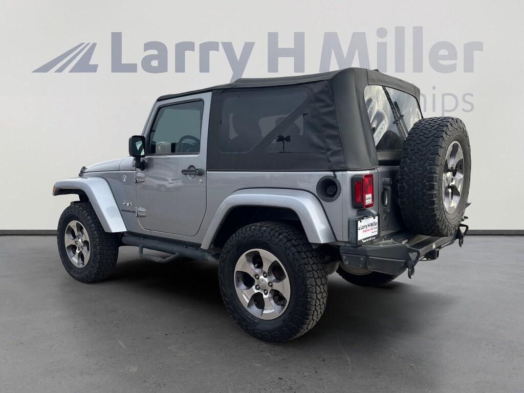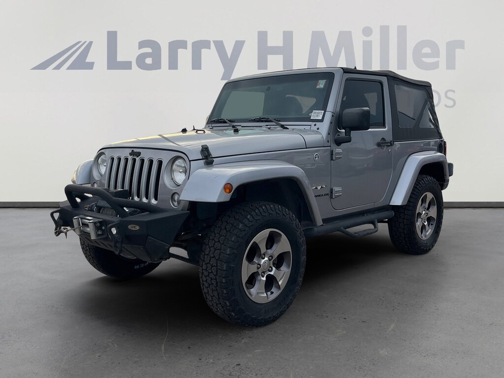 This 2016 Billet Silver Metallic Clearcoat Jeep Wrangler Sahara 4WD is well equipped and includes these features and benefits: Connectivity Group (Leather Wrapped Steering Wheel, Remote USB Port, Tire Pressure Monitoring Display, Uconnect Voice Command w/Bluetooth, and Vehicle Information Center), Quick Order Package 23G (Body Color Appliques Front Bumper, Body Color Appliques Rear Bumper, and Body Color/Accent Color Grille), 18 x 7.5 Polished Satin Carbon Wheels, 3.21 Rear Axle Ratio, 4-Wheel Disc Brakes, 40GB Hard Drive w/28GB Available, 5-Year SiriusXM Travel Link Service, 6.5 Touchscreen Display, 8 Speakers, ABS brakes, Air Conditioning, Air Conditioning w/Auto Temperature Control, Air Filtering, Alloy wheels, AM/FM radio: SiriusXM, Audio Jack Input for Mobile Devices, Auto-dimming Rear-View mirror, Brake assist, CD player, Cloth Seats w/Adjustable Head Restraints, Compass, Driver door bin, Driver vanity mirror, Dual front impact airbags, Electronic Stability Control, Front anti-roll bar, Front Bucket Seats, Front Center Armrest w/Storage, Front fog lights, Front reading lights, Fully automatic headlights, GPS Navigation, Heated door mirrors, Heated Front Seats, Heavy Duty Suspension w/Gas Shocks, Humidity Sensor, Illuminated entry, Integrated roll-over protection, Leather steering wheel, Low tire pressure warning, Manufacturer's Statement of Origin, Occupant sensing airbag, Outside temperature display, Panic alarm, Passenger door bin, Passenger vanity mirror, Power door mirrors, Power steering, Power windows, Radio data system, Radio: 130, Radio: 430N, Rear anti-roll bar, Remote keyless entry, Security system, SiriusXM Travel Link, Speed control, Steering wheel mounted audio controls, Sunrider Soft Top, Tachometer, Tilt steering wheel, Traction control, Trip computer, and Variably intermittent wipers. 18 x 7.5 Polished Satin Carbon Wheels, 3.21 Rear Axle Ratio, 4-Wheel Disc Brakes, 40GB Hard Drive w/28GB Available, 5-Year SiriusXM Travel Link Service, 6.5 Touchscreen Display, 8 Speakers, ABS brakes, Air Conditioning, Air Conditioning w/Auto Temperature Control, Air Filtering, Alloy wheels, AM/FM radio: SiriusXM, Audio Jack Input for Mobile Devices, Auto-dimming Rear-View mirror, Body Color Appliques Front Bumper, Body Color Appliques Rear Bumper, Body Color/Accent Color Grille, Brake assist, CD player, Cloth Seats w/Adjustable Head Restraints, Compass, Connectivity Group, Driver door bin, Driver vanity mirror, Dual front impact airbags, Electronic Stability Control, Front anti-roll bar, Front Bucket Seats, Front Center Armrest w/Storage, Front fog lights, Front reading lights, Fully automatic headlights, GPS Navigation, Heated door mirrors, Heated Front Seats, Heavy Duty Suspension w/Gas Shocks, Humidity Sensor, Illuminated entry, Integrated roll-over protection, Leather steering wheel, Leather Wrapped Steering Wheel, Low tire pressure warning, Manufacturer's Statement of Origin, Occupant sensing airbag, Outside temperature display, Panic alarm, Passenger door bin, Passenger vanity mirror, Power door mirrors, Power steering, Power windows, Quick Order Package 23G, Radio data system, Radio: 130, Radio: 430N, Rear anti-roll bar, Remote keyless entry, Remote USB Port, Security system, SiriusXM Travel Link, Speed control, Steering wheel mounted audio controls, Sunrider Soft Top, Tachometer, Tilt steering wheel, Tire Pressure Monitoring Display, Traction control, Trip computer, Uconnect Voice Command w/Bluetooth, Variably intermittent wipers, Vehicle Information Center.