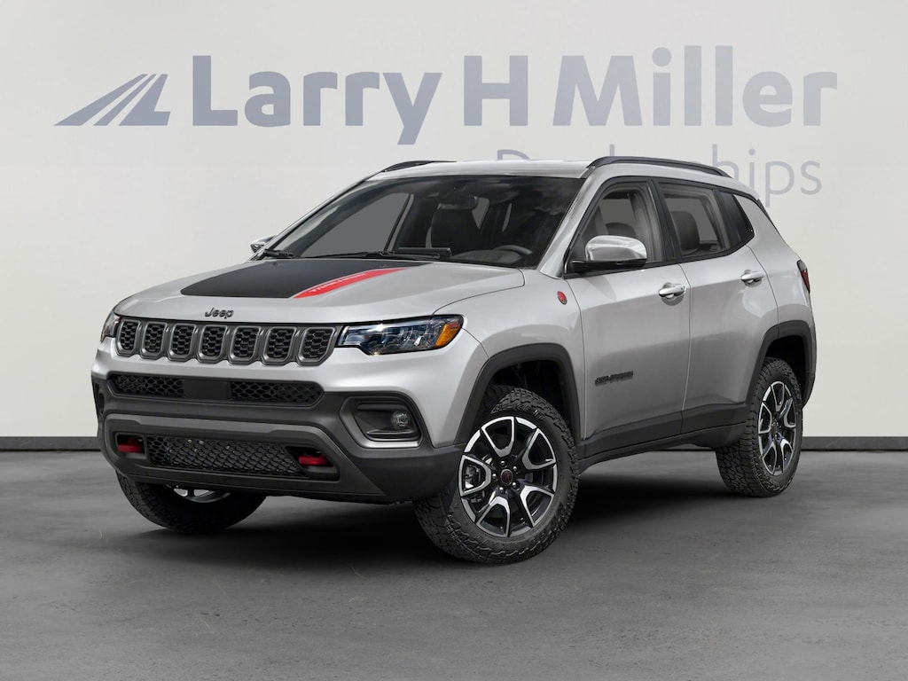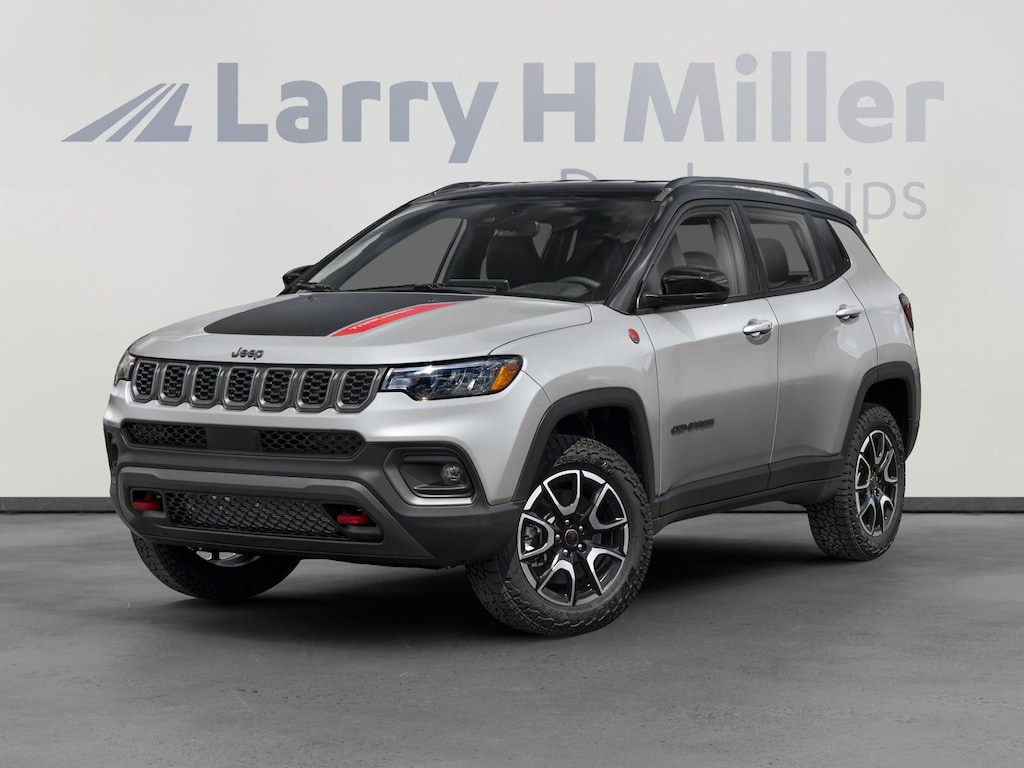 This 2024 Silver Zynith Metallic Clearcoat Jeep Compass Trailhawk 4WD is well equipped and includes these features and benefits: Quick Order Package 29E, 4WD, 10.1 Touchscreen Display, 4-Wheel Disc Brakes, 4.398 Final Drive Ratio, 4G LTE Wi-Fi Hot Spot, 6 Speakers, ABS brakes, Air Conditioning, Alloy wheels, AM/FM radio: SiriusXM, Auto High-beam Headlights, Auto-dimming Rear-View mirror, Automatic temperature control, Brake assist, Bumpers: body-color, Compass, Delay-off headlights, Driver door bin, Driver vanity mirror, Dual front impact airbags, Dual front side impact airbags, Electronic Stability Control, Emergency communication system: Jeep Connect, For Details, Visit DriveUconnect.com, For More Info, Call 800-643-2112, Four wheel independent suspension, Front anti-roll bar, Front Bucket Seats, Front Center Armrest w/Storage, Front dual zone A/C, Front fog lights, Front License Plate Bracket, Front reading lights, Fully automatic headlights, Global Telematics Box Module (TBM), Heated door mirrors, Illuminated entry, Knee airbag, Leather Shift Knob, Leather steering wheel, Low tire pressure warning, Occupant sensing airbag, Outside temperature display, Overhead airbag, Overhead console, Panic alarm, ParkView Rear Back-Up Camera, Passenger door bin, Passenger vanity mirror, Power door mirrors, Power steering, Power windows, Premium Cloth/Leather Trim Bucket Seats, Radio: Uconnect 5 w/10.1 Display, Rain sensing wipers, Rear anti-roll bar, Rear seat center armrest, Rear window defroster, Rear window wiper, Remote keyless entry, Security system, SiriusXM Guardian - Included Trial (B), SiriusXM Radio Service, Speed control, Split folding rear seat, Spoiler, Steering wheel mounted audio controls, Tachometer, Telescoping steering wheel, Tilt steering wheel, Traction control, Trip computer, Turn signal indicator mirrors, Variably intermittent wipers, and Wheels: 17 x 6.5 Painted Black AluminuM. 4WD, 10.1 Touchscreen Display, 4-Wheel Disc Brakes, 4.398 Final Drive Ratio, 4G LTE Wi-Fi Hot Spot, 6 Speakers, ABS brakes, Air Conditioning, Alloy wheels, AM/FM radio: SiriusXM, Auto High-beam Headlights, Auto-dimming Rear-View mirror, Automatic temperature control, Brake assist, Bumpers: body-color, Compass, Delay-off headlights, Driver door bin, Driver vanity mirror, Dual front impact airbags, Dual front side impact airbags, Electronic Stability Control, Emergency communication system: Jeep Connect, For Details, Visit DriveUconnect.com, For More Info, Call 800-643-2112, Four wheel independent suspension, Front anti-roll bar, Front Bucket Seats, Front Center Armrest w/Storage, Front dual zone A/C, Front fog lights, Front License Plate Bracket, Front reading lights, Fully automatic headlights, Global Telematics Box Module (TBM), Heated door mirrors, Illuminated entry, Knee airbag, Leather Shift Knob, Leather steering wheel, Low tire pressure warning, Occupant sensing airbag, Outside temperature display, Overhead airbag, Overhead console, Panic alarm, ParkView Rear Back-Up Camera, Passenger door bin, Passenger vanity mirror, Power door mirrors, Power steering, Power windows, Premium Cloth/Leather Trim Bucket Seats, Quick Order Package 29E, Radio: Uconnect 5 w/10.1 Display, Rain sensing wipers, Rear anti-roll bar, Rear seat center armrest, Rear window defroster, Rear window wiper, Remote keyless entry, Security system, SiriusXM Guardian - Included Trial (B), SiriusXM Radio Service, Speed control, Split folding rear seat, Spoiler, Steering wheel mounted audio controls, Tachometer, Telescoping steering wheel, Tilt steering wheel, Traction control, Trip computer, Turn signal indicator mirrors, Variably intermittent wipers, Wheels: 17 x 6.5 Painted Black Aluminum, 4WD.