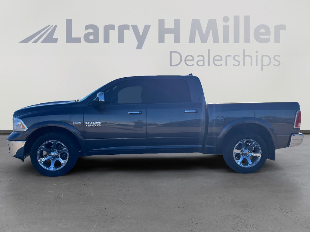 This 2014 Granite Crystal Metallic Clearcoat Ram 1500 Laramie 4WD is well equipped and includes these features and benefits: Convenience Group (Auto High Beam Headlamp Control, Keyless Enter-N-Go, Rain Sensitive Windshield Wipers, and Remote Proximity Keyless Entry), Protection Group (Tow Hooks), Quick Order Package 26H Laramie, Trailer Tow Mirrors & Brake Group (Power Chrome Trailer Tow Mirrors and Trailer Brake Control), 1 Yr. Trial (Registration Required), 1-Yr SIRIUSXM Traffic Service, 1-Yr SIRIUSXM Travel Link Service, 10 Speakers, 115V Auxiliary Power Outlet, 20 x 9 Chrome Clad Aluminum Wheels, 3.21 Rear Axle Ratio, 32 Gallon Fuel Tank, 4-Corner Air Suspension, 4-Wheel Disc Brakes, ABS brakes, Active Grille Shutters, Adjustable pedals, Air Conditioning, Alloy wheels, AM/FM radio, Anti-Spin Differential Rear Axle, Audio memory, Auto-dimming door mirrors, Auto-dimming Rear-View mirror, Automatic temperature control, Brake assist, Bumpers: chrome, Compass, Delay-off headlights, Driver door bin, Driver vanity mirror, Dual front impact airbags, Dual front side impact airbags, Electronic Shift, Electronic Stability Control, Emergency communication system, Folding Flat Load Floor Storage, Front anti-roll bar, Front Center Armrest w/Storage, Front dual zone A/C, Front fog lights, Front reading lights, Front wheel independent suspension, Fully automatic headlights, Garage door transmitter, GPS Navigation, HD Radio, Heated door mirrors, Heated Front Seats, Heated front seats, Heated steering wheel, High Back Seats, Illuminated entry, Leather steering wheel, Leather Trim 40/20/40 Bench Seat, Low tire pressure warning, Manufacturer's Statement of Origin, Memory seat, Occupant sensing airbag, Outside temperature display, Overhead airbag, Overhead console, Panic alarm, ParkSense Front/Rear Park Assist System, ParkView Rear Back-Up Camera, Passenger door bin, Passenger vanity mirror, Pedal memory, Power 10-Way Memory Driver & 6-Way Passenger Seats, Power door mirrors, Power driver seat, Power passenger seat, Power steering, Power windows, Radio data system, Radio: Uconnect 8.4A AM/FM/SXM/BT, Radio: Uconnect 8.4AN AM/FM/SXM/HD/BT/NAV, Rear 60/40 Split Folding Seat, Rear anti-roll bar, Rear seat center armrest, Rear step bumper, Rear Window Defroster, Remote keyless entry, Remote Start System, Security system, SIRIUSXM Traffic, SiriusXM Travel Link, Speed control, Split folding rear seat, Spray In Bedliner, Steering wheel mounted audio controls, Tachometer, Tilt steering wheel, Tip Start, Traction control, Trip computer, Turn signal indicator mirrors, Uconnect Voice Command w/Bluetooth, Variably intermittent wipers, Ventilated Front Seats, Ventilated front seats, and Voltmeter. 1 Yr. Trial (Registration Required), 1-Yr SIRIUSXM Traffic Service, 1-Yr SIRIUSXM Travel Link Service, 10 Speakers, 115V Auxiliary Power Outlet, 20 x 9 Chrome Clad Aluminum Wheels, 3.21 Rear Axle Ratio, 32 Gallon Fuel Tank, 4-Corner Air Suspension, 4-Wheel Disc Brakes, ABS brakes, Active Grille Shutters, Adjustable pedals, Air Conditioning, Alloy wheels, AM/FM radio, Anti-Spin Differential Rear Axle, Audio memory, Auto High Beam Headlamp Control, Auto-dimming door mirrors, Auto-dimming Rear-View mirror, Automatic temperature control, Brake assist, Bumpers: chrome, Compass, Convenience Group, Delay-off headlights, Driver door bin, Driver vanity mirror, Dual front impact airbags, Dual front side impact airbags, Electronic Shift, Electronic Stability Control, Emergency communication system, Folding Flat Load Floor Storage, Front anti-roll bar, Front Center Armrest w/Storage, Front dual zone A/C, Front fog lights, Front reading lights, Front wheel independent suspension, Fully automatic headlights, Garage door transmitter, GPS Navigation, HD Radio, Heated door mirrors, Heated Front Seats, Heated front seats, Heated steering wheel, High Back Seats, Illuminated entry, Keyless Enter-N-Go, Leather steering wheel, Leather Trim 40/20/40 Bench Seat, Low tire pressure war