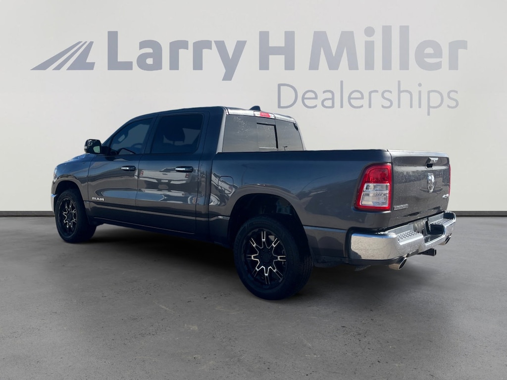 This 2020 Granite Crystal Metallic Clearcoat Ram 1500 Big Horn/Lone Star 4WD is well equipped and includes these features and benefits: Big Horn Level 1 Equipment Group (2nd Row In Floor Storage Bins, Auto-Dimming Rear-View Mirror, Big Horn IP Badge, Black Premium Power Mirrors, Class IV Receiver Hitch, Cluster 3.5 TFT Color Display, Foam Bottle Insert (Door Trim Panel), Glove Box Lamp, Power 4-Way Driver Lumbar Adjust, Power 8-Way Driver Seat, Power Adjustable Pedals, Radio: Uconnect 4 w/8.4 Display, Rear Dome w/On/Off Switch Lamp, Rear Power Sliding Window, Rear Window Defroster, SiriusXM Satellite Radio, Sun Visors w/Illuminated Vanity Mirrors, and Universal Garage Door Opener), Quick Order Package 27Z Big Horn (Big Horn Badge), 3 Rear Seat Head Restraints, 33 Gallon Fuel Tank, 4 Way Front Headrests, 4-Wheel Disc Brakes, 48V Belt Starter Generator, 6 Speakers, ABS brakes, Air Conditioning, Alloy wheels, AM/FM radio, Anti-Spin Differential Rear Axle, Brake assist, Bumpers: chrome, Cloth Bench Seat, Compass, Delay-off headlights, Driver door bin, Dual front impact airbags, Dual front side impact airbags, Electronic Stability Control, Engine Calibration Flash (DISC), Front anti-roll bar, Front Center Armrest w/Storage, Front fog lights, Front reading lights, Front Seat Back Map Pockets, Front wheel independent suspension, Fully automatic headlights, GPS Antenna Input, Heated door mirrors, Illuminated entry, Leather steering wheel, Low tire pressure warning, Occupant sensing airbag, Outside temperature display, Overhead airbag, Overhead console, Panic alarm, ParkView Rear Back-Up Camera, Passenger door bin, Passenger vanity mirror, Power door mirrors, Power steering, Power windows, Radio data system, Radio: Uconnect 3 w/5 Display, Rear 60/40 Folding Seat, Rear anti-roll bar, Rear seat center armrest, Rear step bumper, Rear Wheelhouse Liners, Remote keyless entry, Speed control, Split folding rear seat, Steering wheel mounted audio controls, Tachometer, Telescoping steering wheel, Tilt steering wheel, Traction control, Trip computer, Variably intermittent wipers, Voltmeter, Wheels: 18 x 8 Cast-Aluminum Painted, and Wheels: 20 x 9 Aluminum Chrome Clad (WRK) 2nd Row In Floor Storage Bins, 3 Rear Seat Head Restraints, 33 Gallon Fuel Tank, 4 Way Front Headrests, 4-Wheel Disc Brakes, 48V Belt Starter Generator, 6 Speakers, ABS brakes, Air Conditioning, Alloy wheels, AM/FM radio, Anti-Spin Differential Rear Axle, Auto-Dimming Rear-View Mirror, Big Horn Badge, Big Horn IP Badge, Big Horn Level 1 Equipment Group, Black Premium Power Mirrors, Brake assist, Bumpers: chrome, Class IV Receiver Hitch, Cloth Bench Seat, Cluster 3.5 TFT Color Display, Compass, Delay-off headlights, Driver door bin, Dual front impact airbags, Dual front side impact airbags, Electronic Stability Control, Engine Calibration Flash (DISC), Foam Bottle Insert (Door Trim Panel), Front anti-roll bar, Front Center Armrest w/Storage, Front fog lights, Front reading lights, Front Seat Back Map Pockets, Front wheel independent suspension, Fully automatic headlights, Glove Box Lamp, GPS Antenna Input, Heated door mirrors, Illuminated entry, Leather steering wheel, Low tire pressure warning, Occupant sensing airbag, Outside temperature display, Overhead airbag, Overhead console, Panic alarm, ParkView Rear Back-Up Camera, Passenger door bin, Passenger vanity mirror, Power 4-Way Driver Lumbar Adjust, Power 8-Way Driver Seat, Power Adjustable Pedals, Power door mirrors, Power steering, Power windows, Quick Order Package 27Z Big Horn, Radio data system, Radio: Uconnect 3 w/5 Display, Radio: Uconnect 4 w/8.4 Display, Rear 60/40 Folding Seat, Rear anti-roll bar, Rear Dome w/On/Off Switch Lamp, Rear Power Sliding Window, Rear seat center armrest, Rear step bumper, Rear Wheelhouse Liners, Rear Window Defroster, Remote keyless entry, SiriusXM Satellite Radio, Speed control, Split folding rear seat, Steering wheel mounted audio controls, Sun Visors w/Illuminated Vanity Mirr
