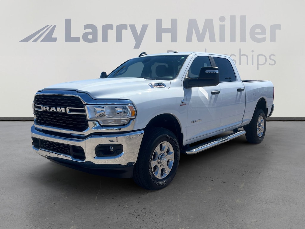 This 2023 Bright White Clearcoat Ram 2500 Big Horn 4WD is well equipped and includes these features and benefits: Cold Weather Group (Engine Block Heater and MOPAR Winter Front Grille Cover), Heavy Duty Snow Plow Prep Group (220 Amp Alternator), Level 1 Equipment Group (2 Way Rear Headrest Seat, 2nd Row In Floor Storage Bins, 4 Way Front Headrests, 40/20/40 Split Bench Seat, 4G LTE Wi-Fi Hot Spot, 8.4 Touchscreen Display, Apple CarPlay, Auto Power-Folding Mirrors, Big Horn IP Badge, Black Exterior Mirrors, Bluetooth Handsfree Phone & Audio, Connectivity - US/Canada, Dual Glove Boxes, Exterior Mirrors Courtesy Lamps, Exterior Mirrors w/Heating Element, Exterior Mirrors w/Supplemental Signals, Foam Bottle Insert (Door Trim Panel), Footwell Courtesy Lamp, For Details, Visit DriveUconnect.com, For More Info, Call 800-643-2112, Forward & Reverse Utility Lights, Front Armrest w/Cupholders, Front Center Seat Cushion Storage, Front Fog Lamps, Front Seat Back Map Pockets, Global Telematics Box Module (TBM), Glove Box Lamp, Google Android Auto, GPS Antenna Input, Integrated Center Stack Radio, Integrated Voice Command w/Bluetooth, Leather Wrapped Steering Wheel, Locking Lower Glove Box, Manual Adjust 4-Way Front Passenger Seat, Mirror Running Lights, Power 2-Way Driver Lumbar Adjust, Power Adjust 8-Way Driver Seat, Power Adjust Mirrors, Power Adjustable Convex Aux Mirrors, Power Heated Fold Telescope Mirrors, Power Telescoping Mirrors, Premium Cloth 40/20/40 Bench Seat, Radio: Uconnect 5 W w/8.4 Display, Rear 60/40 Folding Seat, Rear Dome w/On/Off Switch Lamp, Selectable Tire Fill Alert, SiriusXM Radio Service, SiriusXM Satellite Radio, Steering Wheel Mounted Audio Controls, and Storage Tray), Quick Order Package 2HZ Big Horn, 3.73 Axle Ratio, 4-Wheel Disc Brakes, 6 Speakers, ABS brakes, Active Noise Control System, Air Conditioning, Alloy wheels, Auto-dimming Rear-View mirror, Brake assist, Bumpers: chrome, Center Hub, Center Stack Storage Drawer, Chrome Flat Cab-Length Side Steps, Cloth 40/20/40 Bench Seat, Compass, Delay-off headlights, Driver door bin, Dual front impact airbags, Dual front side impact airbags, Electronic Stability Control, Electronically Controlled Throttle, Emergency communication system: SiriusXM Guardian, Front anti-roll bar, Front Center Armrest w/Storage, Front License Plate Bracket, Front reading lights, Fully automatic headlights, Heated door mirrors, Illuminated entry, Low tire pressure warning, Manual Adjust 4-Way Driver Seat, Manufacturer's Statement of Origin, MOPAR Front & Rear Rubber Floor Mats, MOPAR Spray In Bedliner, Occupant sensing airbag, Outside temperature display, Overhead airbag, Overhead console, Panic alarm, ParkSense Front/Rear Park Assist System, ParkView Rear Back-Up Camera, Passenger door bin, Passenger vanity mirror, Power door mirrors, Power steering, Power windows, Radio data system, Radio: Uconnect 3 w/5 Display, Rear anti-roll bar, Rear Folding Seat, Rear seat center armrest, Rear step bumper, Rear Window Defroster, Remote keyless entry, Speed control, Tachometer, Tilt steering wheel, Tip Start, Tow Hooks, Traction control, Trip computer, Turn signal indicator mirrors, Variably intermittent wipers, Voltmeter, and Wheels: 18 x 8.0 Polished AluminuM. 2 Way Rear Headrest Seat, 220 Amp Alternator, 2nd Row In Floor Storage Bins, 3.73 Axle Ratio, 4 Way Front Headrests, 4-Wheel Disc Brakes, 40/20/40 Split Bench Seat, 4G LTE Wi-Fi Hot Spot, 6 Speakers, 8.4 Touchscreen Display, ABS brakes, Active Noise Control System, Air Conditioning, Alloy wheels, Apple CarPlay, Auto Power-Folding Mirrors, Auto-dimming Rear-View mirror, Big Horn IP Badge, Black Exterior Mirrors, Bluetooth Handsfree Phone & Audio, Brake assist, Bumpers: chrome, Center Hub, Center Stack Storage Drawer, Chrome Flat Cab-Length Side Steps, Cloth 40/20/40 Bench Seat, Cold Weather Group, Compass, Connectivity - US/Canada, Delay-off headlights, Driver door bin, Dual front impact airbags, Dual front side impact airbags, Dual