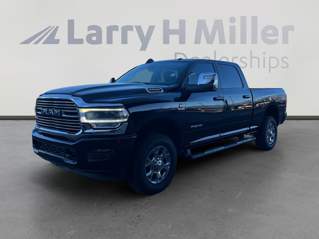 This 2024 Diamond Black Crystal Pearlcoat Ram 2500 Laramie 4WD is well equipped and includes these features and benefits: Laramie Level 1 Equipment Group (12 Touchscreen Display, 2nd Row In Floor Storage Bins, 4G LTE Wi-Fi Hot Spot, Alexa Built-In, Apple CarPlay, Auto Adjust In Reverse Exterior Mirrors, Auto Dim Exterior Mirror, Auto High Beam Headlamp Control, Auto Power-Folding Mirrors, Auto-Dimming Exterior Passenger Mirror, Blind Spot & Cross Path Detection, Center Hub, Chrome Exterior Mirrors, Connected Travel & Traffic Services, Connectivity - US/Canada, Disassociated Touchscreen Display, Exterior Mirrors Courtesy Lamps, Exterior Mirrors w/Heating Element, Exterior Mirrors w/Memory, Exterior Mirrors w/Supplemental Signals, Foam Bottle Insert (Door Trim Panel), For Details, Visit DriveUconnect.com, For More Info, Call 800-643-2112, Forward & Reverse Utility Lights, Front LED Fog Lamps, Global Telematics Box Module (TBM), Google Android Auto, GPS Antenna Input, GPS Navigation, HD Radio, Integrated Voice Command w/Bluetooth, LED Reflector Headlamps, LED Tail Lamps, Mirror Running Lights, Off-Road Information Pages, ParkSense Front/Rear Park Assist System, Power Adjust Mirrors, Power Adjustable Convex Aux Mirrors, Power Adjustable Pedals w/Memory, Power Heated Fold Telescopic Mirrors w/Memory, Power Telescoping Mirrors, Radio: Uconnect 5 Nav w/12.0 Display, Rain Sensitive Windshield Wipers, Rear Power Sliding Window, Rear Window Defroster, Remote Tailgate Release, Selectable Tire Fill Alert, SiriusXM Radio Service, SiriusXM w/360L, Trailer Tow Pages, and Wheels: 18 x 8.0 Polished Aluminum), Quick Order Package 2HH Laramie, 10 Speakers, 115V Auxiliary Rear Power Outlet, 2 Way Rear Headrest Seat, 220 Amp Alternator, 3.73 Axle Ratio, 4 Way Front Headrests, 4-Wheel Disc Brakes, ABS brakes, Active Noise Control System, Air Conditioning, Alloy wheels, AM/FM radio: SiriusXM with 360L, Apple CarPlay/Android Auto, Automatic temperature control, Brake assist, Bumpers: body-color, Compass, Delay-off headlights, Driver door bin, Driver vanity mirror, Dual front impact airbags, Dual front side impact airbags, Electronic Stability Control, Electronically Controlled Throttle, Front anti-roll bar, Front Center Armrest w/Storage, Front dual zone A/C, Front License Plate Bracket, Front reading lights, Front Seat Back Map Pockets, Fully automatic headlights, Garage door transmitter, Heated door mirrors, Heated Front Seats, Heated front seats, Heated Steering Wheel, Heated steering wheel, Illuminated entry, Leather steering wheel, Leather Trim 40/20/40 Bench Seat, Low tire pressure warning, Manufacturer's Statement of Origin, Navigation System, Occupant sensing airbag, Outside temperature display, Overhead airbag, Overhead console, Panic alarm, ParkView Rear Back-Up Camera, Passenger door bin, Passenger vanity mirror, Power 2-Way Driver Lumbar Adjust, Power 2-Way Passenger Lumbar Adjust, Power Adjust 8-Way Driver Seat, Power Adjust 8-Way Front Passenger Seat, Power door mirrors, Power driver seat, Power passenger seat, Power steering, Power windows, Radio data system, Rear 60/40 Folding Seat, Rear anti-roll bar, Rear reading lights, Rear seat center armrest, Rear step bumper, Rear window defroster, Remote keyless entry, Security system, Speed control, Split folding rear seat, Steering wheel mounted audio controls, Tachometer, Tilt steering wheel, Tip Start, Tow Hooks, Traction control, Trip computer, Turn signal indicator mirrors, Variably intermittent wipers, and VoltmeteR. 10 Speakers, 115V Auxiliary Rear Power Outlet, 12 Touchscreen Display, 2 Way Rear Headrest Seat, 220 Amp Alternator, 2nd Row In Floor Storage Bins, 3.73 Axle Ratio, 4 Way Front Headrests, 4-Wheel Disc Brakes, 4G LTE Wi-Fi Hot Spot, ABS brakes, Active Noise Control System, Air Conditioning, Alexa Built-In, Alloy wheels, AM/FM radio: SiriusXM with 360L, Apple CarPlay, Apple CarPlay/Android Auto, Auto Adjust In Reverse Exterior Mirrors, Auto Dim Exterior Mirror, Auto High