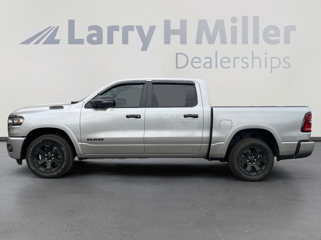 This 2025 Billet Silver Metallic Clearcoat Ram 1500 Big Horn/Lone Star RWD is well equipped and includes these features and benefits: Big Horn Level 2 Equipment Group (115V Auxiliary Power Outlet, 115V Auxiliary Rear Power Outlet, 12 Touchscreen Display, 2nd Row In Floor Storage Bins, 400W Inverter, 4G LTE Wi-Fi Hot Spot, 9 Amplified Speakers w/Subwoofer, Air Conditioning ATC w/Dual Zone Control, Apple CarPlay, Auto Power-Folding Mirrors, Auto-Dimming Exterior Driver Mirror, Auto-Dimming Rear-View Mirror, Black Exterior Mirrors, Black Premium Power Mirrors, Cluster 7.0 TFT Color Display, Configurable Drive Mode, Connected Travel & Traffic Services, Connectivity - US/Canada, Convex Wide-Angle Exterior Mirror Insert, Exterior Mirrors Courtesy Lamps, Exterior Mirrors w/Heating Element, Exterior Mirrors w/Supplemental Signals, Glove Box Lamp, Google Android Auto, GPS Antenna Input, GPS Navigation, HD Radio, Heated Front Seats, Heated Steering Wheel, Integrated Voice Command w/Bluetooth, Leather Wrapped Steering Wheel, LED Dome Lamp w/On/Off Switch, LED Footwell Lighting, Media Hub w/2 Charge Only USBs, Overhead LED Lamps, Power 2-Way Driver Lumbar Adjust, Power Adjust 8-Way Driver Seat, Power Adjustable Pedals, Premium Overhead Console, Radio: Uconnect 5 Nav w/12.0 Display, Rear Power Sliding Window, Rear Window Defroster, Remote Tailgate Release, Security Alarm, SiriusXM w/360L, Steering Wheel Mounted Audio Controls, Sun Visors w/Illuminated Vanity Mirrors, Universal Garage Door Opener, and USB Host Flip), Night Edition (3 Rear Seat Head Restraints, 4 Way Front Headrests, Accent Color Door Handles, Accent Color Premium Power Mirrors, Accent Color Tailgate Handle, Anti-Spin Differential Rear Axle, Black Exterior Truck Badging, Black Headlamp Bezels, Black Interior Accents, Black Painted Exterior Mirrors Caps, Black Tail Lamp Bezels, Body Color Front Bumper, Body Color Rear Bumper w/Step Pads, Bucket Seats, Deluxe Cloth Bucket Seats, Front Seat Back Map Pockets, Full Length Floor Console, Grille Black Surround Black Mesh, Manual Adjust 4-Way Front Passenger Seat, RAM Grille Badge - Black, Rear 60/40 Folding Seat, Rear Center Armrest, Rear Wheelhouse Liners, and Wheels: 20 x 9.0 Aluminum Painted Clad), Quick Order Package 21Z Big Horn, 33 Gallon Fuel Tank, 4-Wheel Disc Brakes, 6 Speakers, ABS brakes, Air Conditioning, Alloy wheels, AM/FM radio, Apple CarPlay/Android Auto, Auto High-beam Headlights, Brake assist, Bumpers: chrome, Cloth Bench Seat, Cluster 12 TFT Color Display, Compass, Delay-off headlights, Driver door bin, Dual front impact airbags, Dual front side impact airbags, Electronic Stability Control, Exterior Parking Camera Rear, Front anti-roll bar, Front Center Armrest w/Storage, Front fog lights, Front reading lights, Front wheel independent suspension, Fully automatic headlights, Heated door mirrors, Illuminated entry, Low tire pressure warning, Manual Folding Exterior Mirrors, Manufacturer's Statement of Origin, Occupant sensing airbag, Outside temperature display, Overhead airbag, Overhead console, Panic alarm, Passenger door bin, Passenger vanity mirror, Power door mirrors, Power steering, Power windows, Radio data system, Radio: Uconnect 5 W w/8.4 Display, RAM Grille Badge - Chrome, Rear anti-roll bar, Rear seat center armrest, Rear step bumper, Remote keyless entry, Speed control, Split folding rear seat, Supplier Part Tracking (J-1), Tachometer, Telescoping steering wheel, Tilt steering wheel, Traction control, Trip computer, Variably intermittent wipers, Voltmeter, and Wheels: 18 x 8 Cast-Aluminum Painted. 115V Auxiliary Power Outlet, 115V Auxiliary Rear Power Outlet, 12 Touchscreen Display, 2nd Row In Floor Storage Bins, 3 Rear Seat Head Restraints, 33 Gallon Fuel Tank, 4 Way Front Headrests, 4-Wheel Disc Brakes, 400W Inverter, 4G LTE Wi-Fi Hot Spot, 6 Speakers, 9 Amplified Speakers w/Subwoofer, ABS brakes, Accent Color Door Handles, Accent Color Premium Power Mirrors, Accent Color Tailgate Handle, Ai