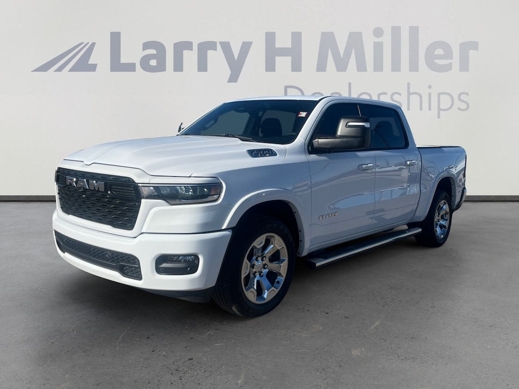 This 2025 Bright White Clearcoat Ram 1500 Big Horn/Lone Star RWD is well equipped and includes these features and benefits: Big Horn Level 2 Equipment Group (115V Auxiliary Power Outlet, 115V Auxiliary Rear Power Outlet, 12 Touchscreen Display, 2nd Row In Floor Storage Bins, 400W Inverter, 4G LTE Wi-Fi Hot Spot, 9 Amplified Speakers w/Subwoofer, Air Conditioning ATC w/Dual Zone Control, Apple CarPlay, Auto Power-Folding Mirrors, Auto-Dimming Exterior Driver Mirror, Auto-Dimming Rear-View Mirror, Black Exterior Mirrors, Black Premium Power Mirrors, Cluster 7.0 TFT Color Display, Configurable Drive Mode, Connected Travel & Traffic Services, Connectivity - US/Canada, Convex Wide-Angle Exterior Mirror Insert, Exterior Mirrors Courtesy Lamps, Exterior Mirrors w/Heating Element, Exterior Mirrors w/Supplemental Signals, Glove Box Lamp, Google Android Auto, GPS Antenna Input, GPS Navigation, HD Radio, Heated Front Seats, Heated Steering Wheel, Integrated Voice Command w/Bluetooth, Leather Wrapped Steering Wheel, LED Dome Lamp w/On/Off Switch, LED Footwell Lighting, Media Hub w/2 Charge Only USBs, Overhead LED Lamps, Power 2-Way Driver Lumbar Adjust, Power Adjust 8-Way Driver Seat, Power Adjustable Pedals, Premium Overhead Console, Radio: Uconnect 5 Nav w/12.0 Display, Rear Power Sliding Window, Rear Window Defroster, Remote Tailgate Release, Security Alarm, SiriusXM w/360L, Steering Wheel Mounted Audio Controls, Sun Visors w/Illuminated Vanity Mirrors, Universal Garage Door Opener, and USB Host Flip), Quick Order Package 21Z Big Horn, Sport Appearance Package (3 Rear Seat Head Restraints, 4 Way Front Headrests, Black Interior Accents, Body Color Door Handles, Body Color Front Bumper, Body Color Rear Bumper w/Step Pads, Body Color Tailgate Handle, Bucket Seats, Deluxe Cloth Bucket Seats, Front Seat Back Map Pockets, Full Length Floor Console, Grille Surround 1 Body Color Texture 1 Black, Manual Adjust 4-Way Front Passenger Seat, RAM Grille Badge - Chrome, Rear 60/40 Folding Seat, and Rear Center Armrest), Towing Technology Group (Trailer Hitch Line-Up Assist), Trailer Tow Group (Accent Color Tailgate Handle, Black Trailer Tow Power Mirrors, Manual Folding Exterior Mirrors, Manual Telescoping Mirrors, Mirror Clearance/Running Lights, Power-Adjustable Convex Aux Mirrors, Trailer Brake Control, Trailer Reverse Steering Control, Trailer Tire Pressure Monitoring System, and Trailer Tow Mirrors), 12-Way/1-Way Trailer Connector, 33 Gallon Fuel Tank, 4-Wheel Disc Brakes, 6 Speakers, ABS brakes, Air Conditioning, Alloy wheels, AM/FM radio, Anti-Spin Differential Rear Axle, Apple CarPlay/Android Auto, Auto High-beam Headlights, Brake assist, Bumpers: chrome, Cloth Bench Seat, Cluster 12 TFT Color Display, Compass, Delay-off headlights, Driver door bin, Dual front impact airbags, Dual front side impact airbags, Electronic Stability Control, Exterior Parking Camera Rear, Front anti-roll bar, Front Center Armrest w/Storage, Front fog lights, Front reading lights, Front wheel independent suspension, Fully automatic headlights, Heated door mirrors, Illuminated entry, Low tire pressure warning, Occupant sensing airbag, Outside temperature display, Overhead airbag, Overhead console, Panic alarm, Passenger door bin, Passenger vanity mirror, Power door mirrors, Power steering, Power windows, Radio data system, Radio: Uconnect 5 W w/8.4 Display, Rear anti-roll bar, Rear seat center armrest, Rear step bumper, Remote keyless entry, Speed control, Split folding rear seat, Supplier Part Tracking (J-1), Surround View Camera System, Tachometer, Telescoping steering wheel, Tilt steering wheel, Traction control, Trip computer, Variably intermittent wipers, Voltmeter, Wheels: 18 x 8 Cast-Aluminum Painted, and Wheels: 20 x 9 Aluminum Chrome Clad (WRK) 115V Auxiliary Power Outlet, 115V Auxiliary Rear Power Outlet, 12-Way/1-Way Trailer Connector, 12 Touchscreen Display, 2nd Row In Floor Storage Bins, 3 Rear Seat Head Restraints, 33 Gallon Fuel Tank, 4 Way F