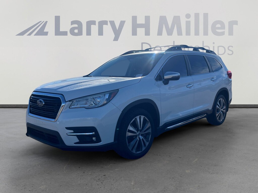 This 2019 Crystal White Pearl Subaru Ascent Touring AWD is well equipped and includes these features and benefits: Popular Package #2A (All-Weather Floor Liners, Auto-Dimming Exterior Mirror w/Approach Light, Cargo Tray, Map & Reading Lights LED Upgrade - 6 Bulb Kit, Rear Bumper Cover, and Splash Guards), Standard Model, 14 Speakers, 20 Alloy Wheels, 3rd row seats: bench, 4-Wheel Disc Brakes, ABS brakes, Air Conditioning, Alloy wheels, AM/FM radio: SiriusXM, Auto High-beam Headlights, Auto-dimming Rear-View mirror, Automatic temperature control, Axle Ratio: 4.44, Brake assist, Bumpers: body-color, CD player, Compass, Delay-off headlights, Driver door bin, Driver vanity mirror, Dual front impact airbags, Dual front side impact airbags, Electronic Stability Control, Emergency communication system: STARLINK Safety and Security, Exterior Parking Camera Rear, Four wheel independent suspension, Front anti-roll bar, Front Bucket Seats, Front Center Armrest, Front dual zone A/C, Front fog lights, Front reading lights, Fully automatic headlights, Garage door transmitter: HomeLink, harman/kardon® Speakers, Heated & Ventilated Front Bucket Seats, Heated door mirrors, Heated front seats, Heated rear seats, Heated steering wheel, Illuminated entry, Knee airbag, Low tire pressure warning, Memory seat, Navigation System, Occupant sensing airbag, Outside temperature display, Overhead airbag, Overhead console, Panic alarm, Passenger door bin, Passenger vanity mirror, Perforated Leather-Trimmed Upholstery, Power door mirrors, Power driver seat, Power Liftgate, Power moonroof, Power passenger seat, Power steering, Power windows, Radio data system, Radio: Subaru STARLINK 8.0 Multimedia Nav System, Rain sensing wipers, Rear air conditioning, Rear anti-roll bar, Rear reading lights, Rear window defroster, Rear window wiper, Remote keyless entry, Roof rack: rails only, Security system, Speed control, Split folding rear seat, Spoiler, STARLINK/Apple CarPlay/Android Auto, Steering wheel mounted audio controls, Tachometer, Telescoping steering wheel, Tilt steering wheel, Traction control, Trip computer, Turn signal indicator mirrors, Variably intermittent wipers, and Ventilated front seats. 14 Speakers, 20 Alloy Wheels, 3rd row seats: bench, 4-Wheel Disc Brakes, ABS brakes, Air Conditioning, All-Weather Floor Liners, Alloy wheels, AM/FM radio: SiriusXM, Auto High-beam Headlights, Auto-Dimming Exterior Mirror w/Approach Light, Auto-dimming Rear-View mirror, Automatic temperature control, Axle Ratio: 4.44, Brake assist, Bumpers: body-color, Cargo Tray, CD player, Compass, Delay-off headlights, Driver door bin, Driver vanity mirror, Dual front impact airbags, Dual front side impact airbags, Electronic Stability Control, Emergency communication system: STARLINK Safety and Security, Exterior Parking Camera Rear, Four wheel independent suspension, Front anti-roll bar, Front Bucket Seats, Front Center Armrest, Front dual zone A/C, Front fog lights, Front reading lights, Fully automatic headlights, Garage door transmitter: HomeLink, harman/kardon® Speakers, Heated & Ventilated Front Bucket Seats, Heated door mirrors, Heated front seats, Heated rear seats, Heated steering wheel, Illuminated entry, Knee airbag, Low tire pressure warning, Map & Reading Lights LED Upgrade - 6 Bulb Kit, Memory seat, Navigation System, Occupant sensing airbag, Outside temperature display, Overhead airbag, Overhead console, Panic alarm, Passenger door bin, Passenger vanity mirror, Perforated Leather-Trimmed Upholstery, Popular Package #2A, Power door mirrors, Power driver seat, Power Liftgate, Power moonroof, Power passenger seat, Power steering, Power windows, Radio data system, Radio: Subaru STARLINK 8.0 Multimedia Nav System, Rain sensing wipers, Rear air conditioning, Rear anti-roll bar, Rear Bumper Cover, Rear reading lights, Rear window defroster, Rear window wiper, Remote keyless entry, Roof rack: rails only, Security system, Speed control, Splash Guards, Split folding r